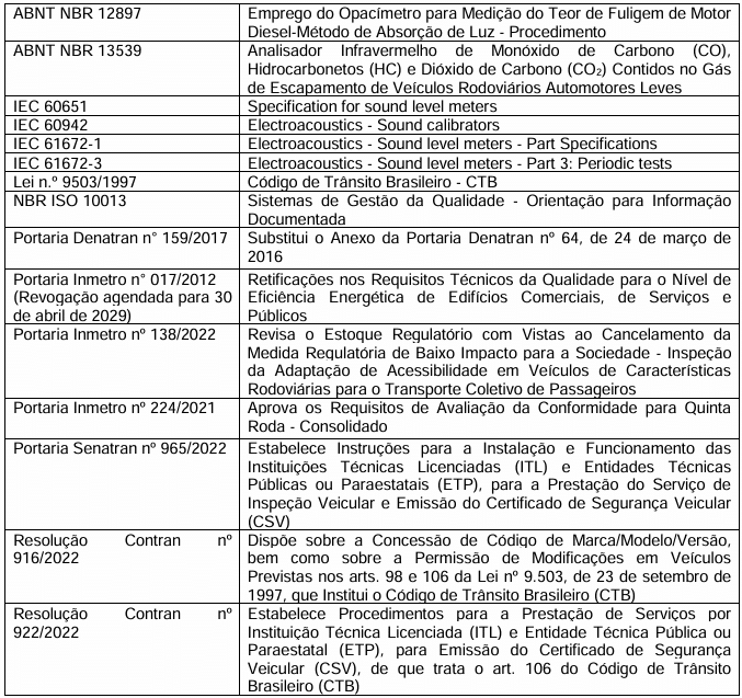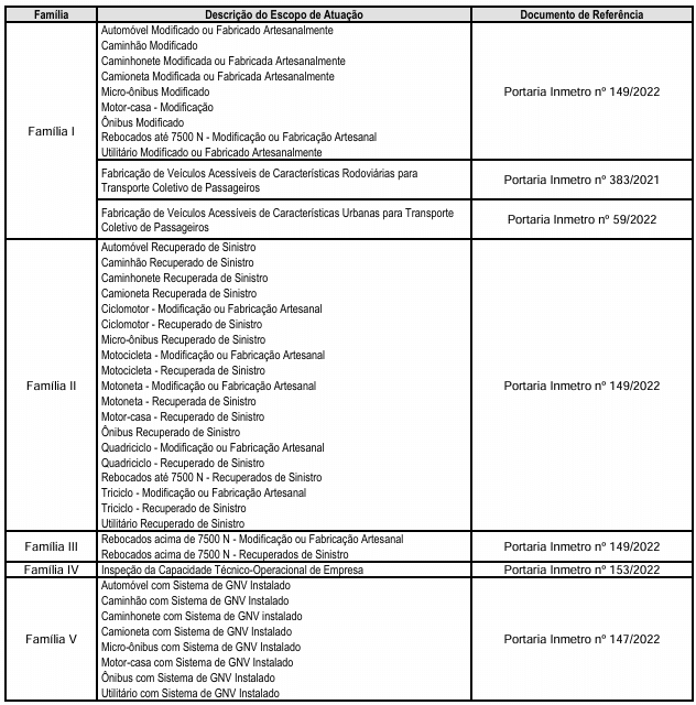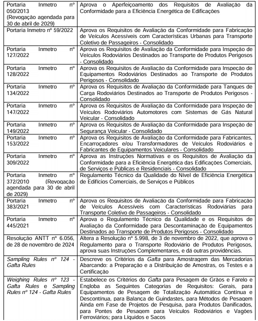 Os itens/subitens específicos previstos nas Portarias Inmetro (nº): 127, 128, 147 e 149, todas de 2022,