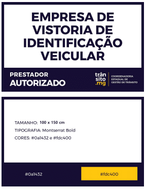 VII – placa de identificação, conforme modelo disponibilizado pela CET-MG, a qual deve estar de acordo com as seguintes especificações: