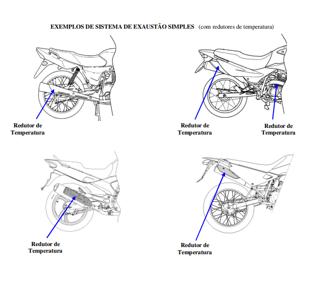10) “dispositivo destinado ao controle de ruído do motor, dimensionado para manter a temperatura de sua superfície externa em nível térmico adequado ao uso seguro do veículo pelos ocupantes sob condições normais de utilização e com uso de vestimentas e acessórios indicados no manual do usuário fornecido pelo fabricante, devendo ser complementado por redutores de temperatura nos pontos críticos de calor, a critério do fabricante, conforme exemplificado no Anexo desta Resolução”.
