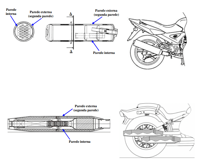 Nota: Os sistemas de exaustão dos motociclos podem apresentar, em sua construção, características de um ou mais tipos de configuração dentre os apresentados neste anexo, segundo as necessidades de projeto e critérios de cada fabricante.