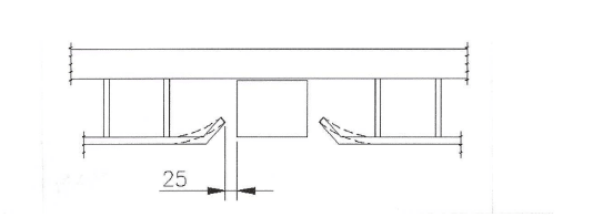3.2 A superfície externa do protetor lateral deve ser lisa. Descontinuidades no protetor lateral devem ser aceitas, desde que devidas a componentes do próprio veículo. As partes adjacentes podem sobrepor-se, desde que a superfície de sobreposição esteja voltada para a parte traseira ou para baixo. A folga máxima longitudinal permitida deve ser de 25 mm (ver Figura 2).