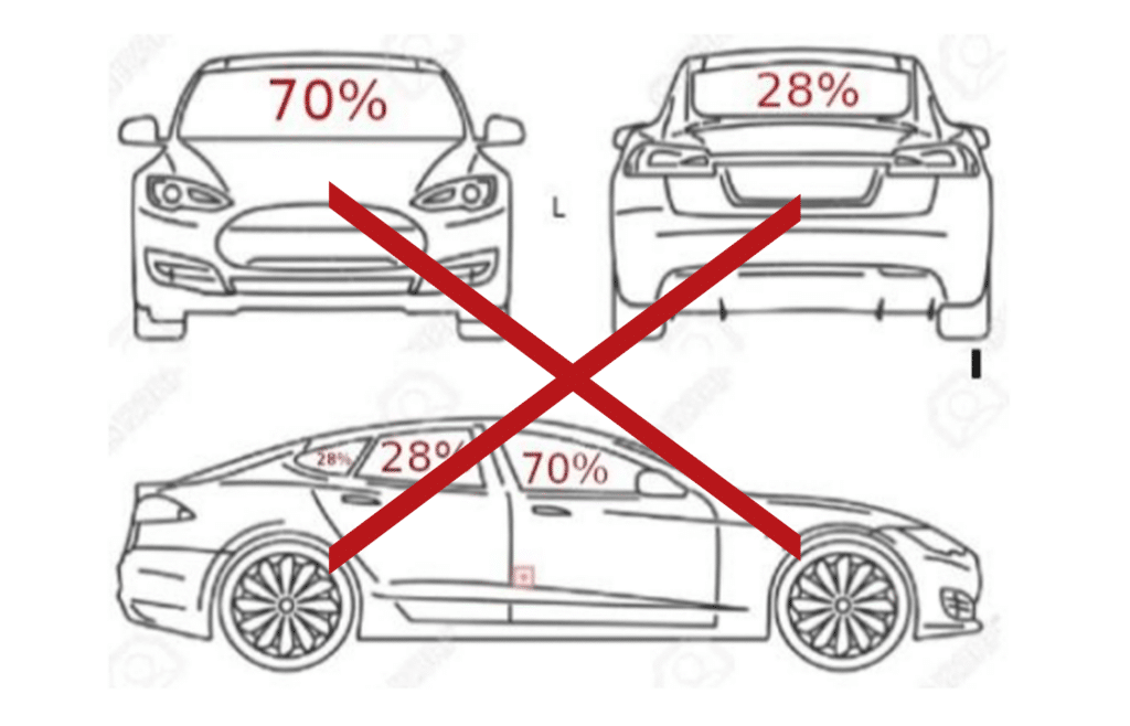II – não poderá ser inferior a 28% para os vidros que não interferem nas áreas envidraçadas indispensáveis à dirigibilidade do veículo.