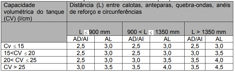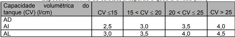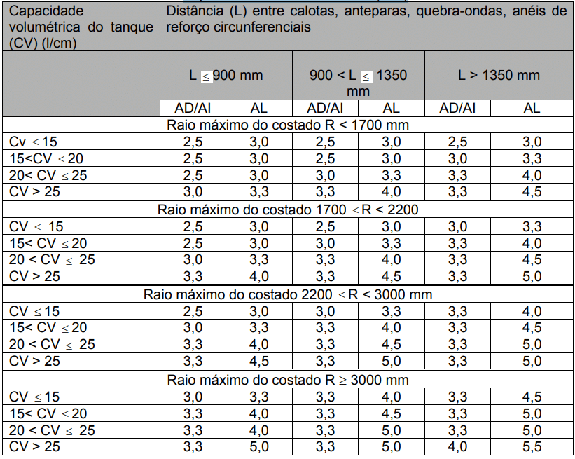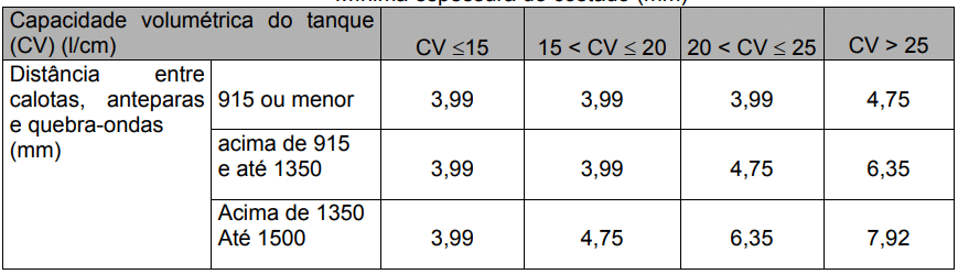 8.7.5.11 A espessura mínima para as chapas do costado, calotas, quebra-ondas e anteparas é