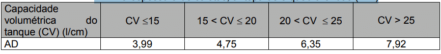 aplicável, de verificação volumétrica e do aplicador do revestimento interno, não devem estar
